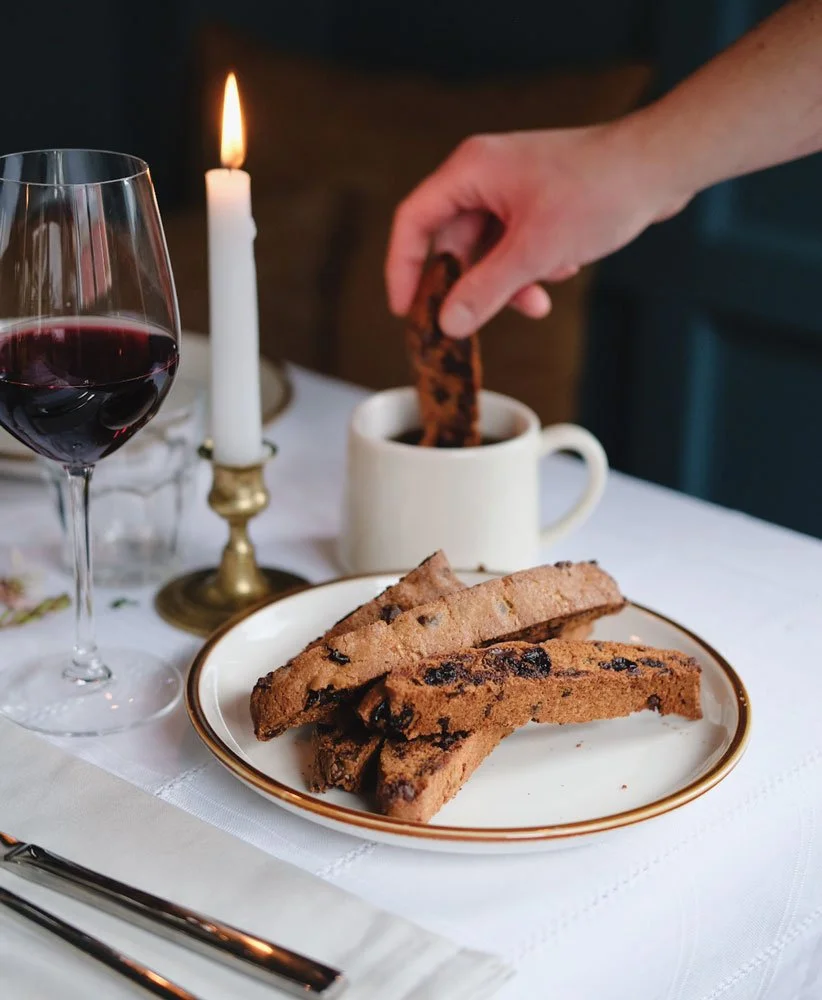 Gilchrist’s four chefs creatively pair its biscotti (above), bison gumbo (below), and a variety of other farm-to-table dishes with a signature collection of 12 wines available at the Suttons Bay location.
